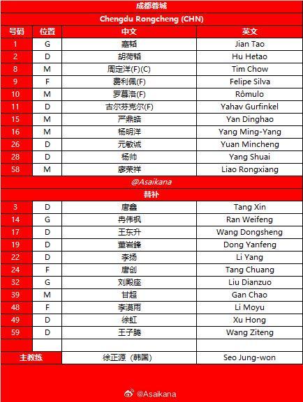 9月30日,Leisu Sports报告说,与AFC Elite League的第二轮江经相比,成都隆琴宣布了阵容。 Chengdu Rongcheng Starter: 1-Jian Tao, 2-Hu Hetao, 11-Gulfinkel, 26-Yuan Mincheng, 28-Yang Shuai, 8-Zhou Dingang, 10-Romuluo, 15-Yan Dinghao, 16-Yan Mingang, 58-Liao Rongxiang, 9-Felipe Gangwon Starter: 1-Lioo Hyunte, 33-Hong Zhe, 8-jiang runqiu,14-kim daye,18-kim kanggoo,70-ju benzhe,26-kim Minjun,27-kim dao-hwan,73-yun rilu,90-kim shin-jin